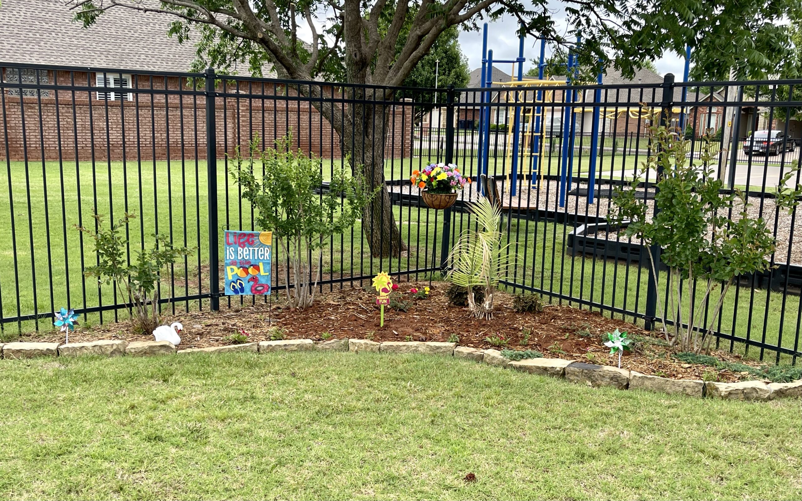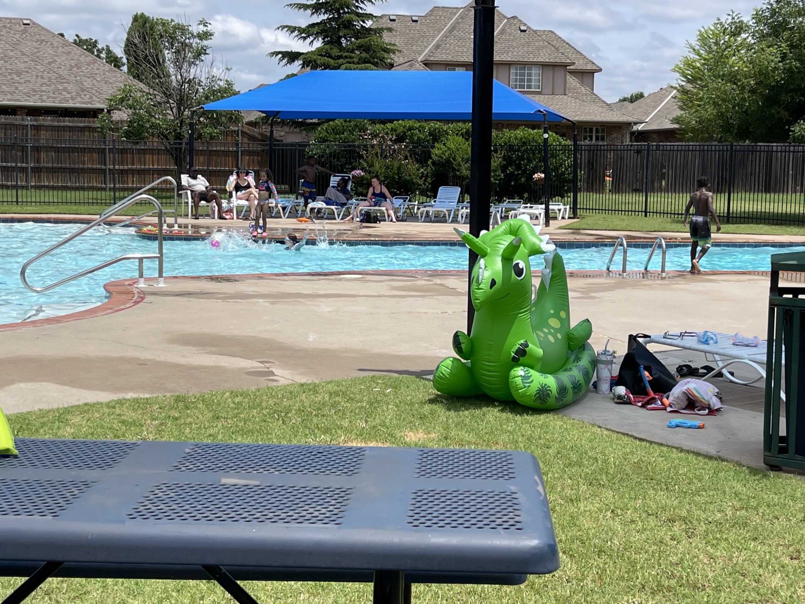 The park was sprinkled with signs to welcome attendees while the pool was shimmering clean inviting everyone to jump right in!  The kids could hardly wait to test out the sparkling water in our newly resurfaced pool, which opened at Noon!